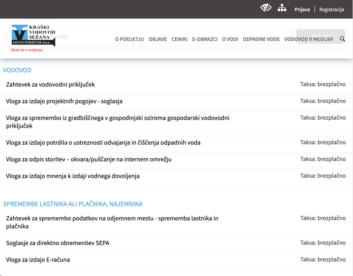 Nova spletna stran ustreza zakonskim zahtevam, ki smo jih morali upoštevati ob vzpostavljanju e-stika z občani. Vse te zahteve smo združili z željo ponuditi nove storitve na spletni strani, tako da nova spletna stran vsebuje katalog informacij javnega značaja, splošne pogoje uporabe, informacije o avtorskih pravicah, pravilnik o piškotkih, vsebino vezano na varstvo osebnih podatkov, skladnost obračunavanja taks z zakonom o upravnih taksah, oddajo vlog skladno z določili elektronskega poslovanja...